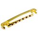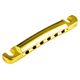 ABM 3020ga Aged Stop Tail; milled from solid Aluminium; Total String Spacing: 52 mm; Radius: 305mm (12”); Finish: Gold; incl. 5/16” Mounting Studs and Hammer in Bushings, Bolt Distance: 82mm (3,22”), Made in Germany; Note: for Asian guitars you need M8 bolts (not included)