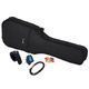 - Consists of gig bag, clip tuner, strap, cable and picks