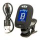 Kala Klipz KKR-BK Chromatic Tuner, chromatic clip on tuner, tuning via clip-on vibration sensor, detection/tuning range from A0 (27.5hz) to C8 (4186hz), tuning accuracy +/- 1 cent, settings chromatic, Ukulele, Guitar, Bass and Violin, power supply via rechargeable battery with included USB-C Charging Cable, large, bright backlit display, weight 36 g