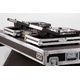 Thon DJ Table Z-Style 160x60 - compact DJ table; made of 7 mm multiplex wood; 30x30 mm aluminium profiles; 8 x spring-loaded butterfly fasteners; 4 x folding handles; 8 flat steel corners; 8 x rubber feet; height-adjustable feet for levelling; 2 x built-in castors; foam; working height approx. 90 cm; working surface: 1600 x 600 mm; external dimensions (WxDxH): 1630 x 610 x 270 mm; weight: 29.8 kg; colour: black Coated; made in Germany
