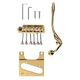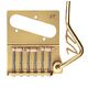 VegaTrem VT2ND Teletrem Classic Gold, vibrato system für T-style electric guitars, 6 string version, VT logo on the vibrato arm, suitable for guitars with classic bridge dimensions (71 mm between string holes and top pickup screw), uncomplicated, precise vibrato system with great tuning stability, no drilling /routing required for assembly, adjustable bridge height and string intonation, string spacing 10.8 mm / 0.43" (54 mm / 2.12" e to E), dimensions (L x W x H) 99.3 x 85 x 17 mm / 3.9" x 3.34" x 0.67" (without arm), made from stainless steel, brass saddles, gold finish, incl. screws, 1.5 mm and 2 mm allen keys