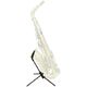 WoodWindDesign Alto Saxophone Stand; stand for alto saxophone; ultra-light carbon fibre instrument stand; patented design with shock-absorbing construction; legs magnetically attached - easy to insert and remove; the three feet can be removed from the base and stowed in the stand for transport; the stand can be stowed in the bell or instrument case to save space